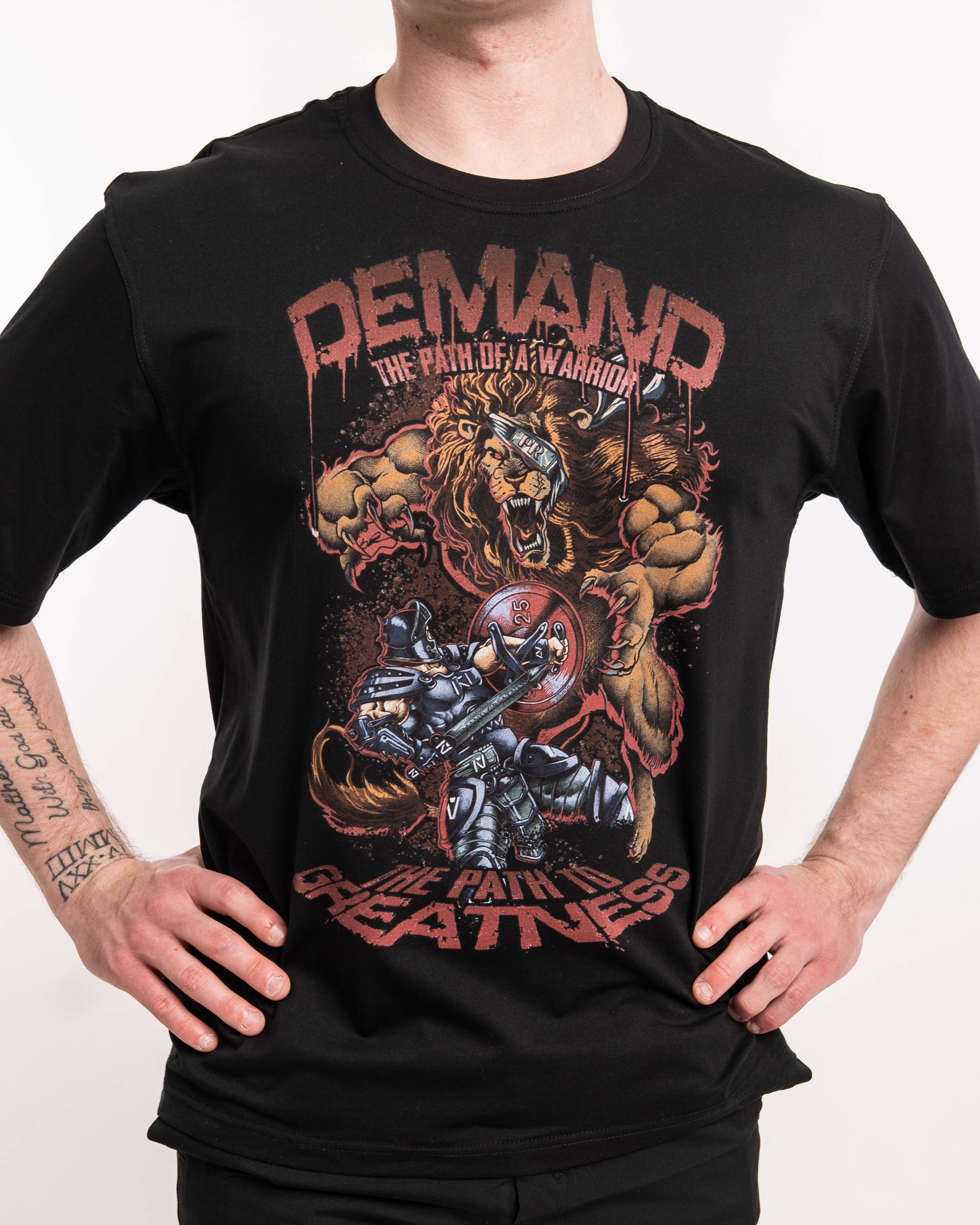 Tirelessly training and pushing ourselves through with continuous focus can be reflected in the Knight’s actions and armorment. Each training session and each rep builds our Demand for Greatness to battle through to our next PRs.